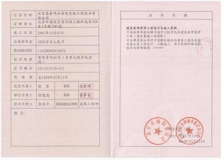 2015年4月,我公司獲得裝飾裝修設(shè)計(jì)施工一體化貳級(jí)資質(zhì)。