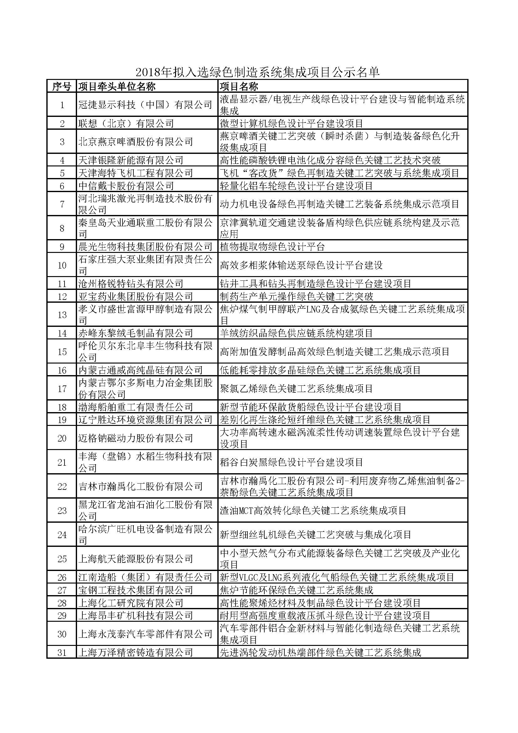 附件:2018年擬入選綠色制造系統(tǒng)集成項(xiàng)目公示名單